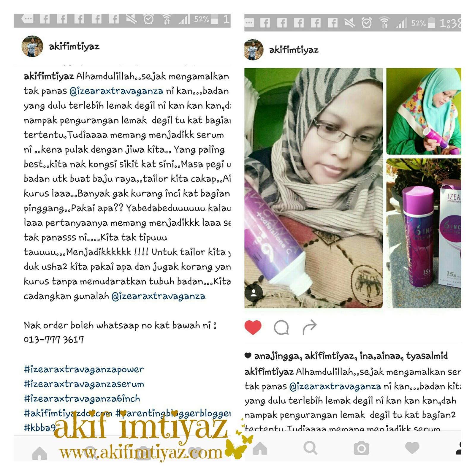 Untuk lebih testimoni dan juga gambar gambar pengguna Izeara Extravaganza ,korang boleh follow instagram Izeara Extravaganza..Kat instagram lagi banyak testimoni yang dikongsikan..Apalagi jom follow cecepat untuk dapatkan lebih info dan update terkini Izeara Extravaganza.Jangan lupa beli Izeara Extravaganza okey ...